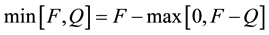 Under the arrangement and the assumptions of the loan contract, if the principal of the loan is F and the market value of the collateral is Q, then the expected value of the loan to the lender at the end of the contract is:
