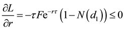 Remarks: The result shows that the raising of interest rates leads to a fall in the supply of loans. The rationale behind this result is that the rise in interest rates reduces the present values of the bond component of the loan and the exercise price of the put option, combining to depress the loan supply. The results may also explain why central banks tend to lower interest rates when the terms and conditions for borrowing are tight, especially during a downturn of the business cycle.