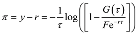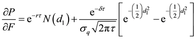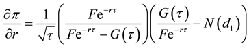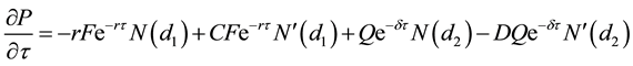 Under the set of assumptions given earlier, Equation (16) suggests that the value of the loan is equivalent to a regular bond (having a face value of F and no coupon payments) and a short position on a European put option on the collateral, with the time left to maturity τ (T − t) and the strike price equal to the final payment of the loan, which by our assumption is the principal, F. The first term of Equation (14) corresponds to the present value of a bond. The put value option follows from [10] [11] , and [12] . Lastly, by performing the relevant differentiations, Equation (14) and Equation (15) correspond to Equation (7), the stochastic partial differential.
