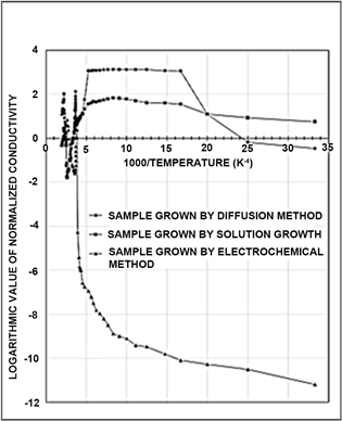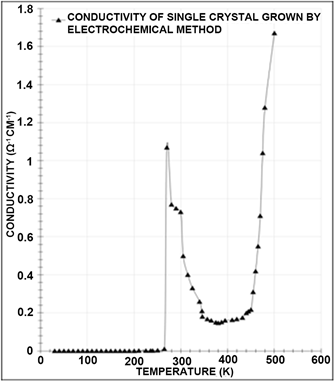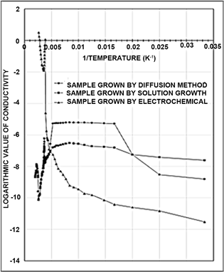 Temperature dependence electrical conductance was observed in every single crystal separately grown by electrochemical, diffusion and solution growth methods as discussed below: