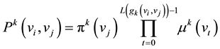 The vertexes between vertex vi and vertex vj, and travelling along the path gk (vi,vj) are vi=v0, v1, …, v (L(gk(vi,vj))) = vj. The information transfer probability from vertex vi to vertex vj in the path gk(vi,vj) is