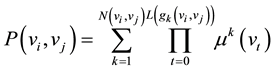 For all the paths from vertex vi and vertex vj, the ending and transfer probabilities of vertex vj are the same. Therefore, the transfer probabilities from vertex vi to vertex vj are summed as