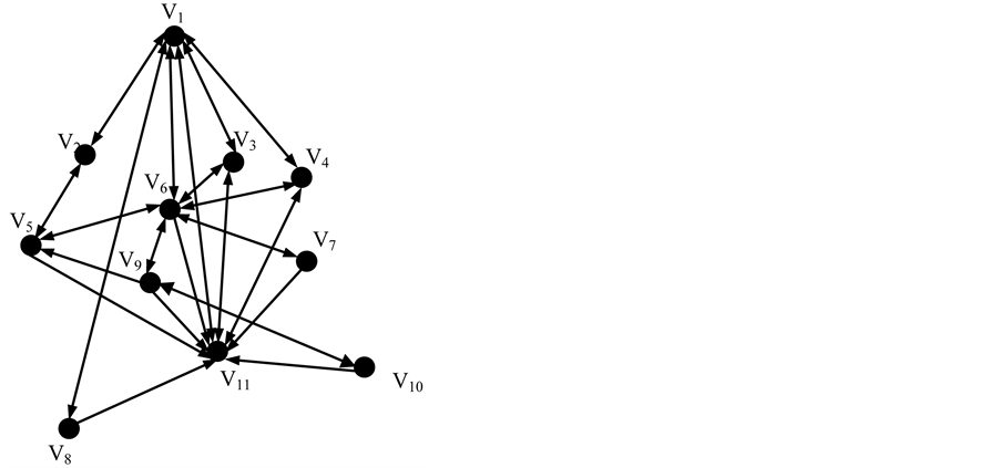 The networks include nodes and edges, in which nodes are subjects and edges are relations between subjects. In the network structure of the information system, nodes on behalf of subsystems while edges stand for information flow relationship between subsystems. Figure 2 shows the network structure of the information system. Nodes are adjacent if they are connected by an edge. The nodes arrows pointing to are downstream nodes, otherwise upstream nodes. There are two edges between nodes if a line has two arrows.