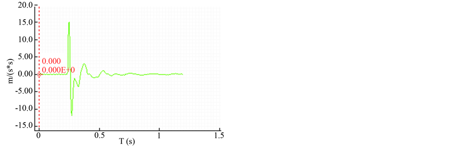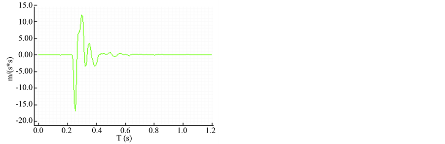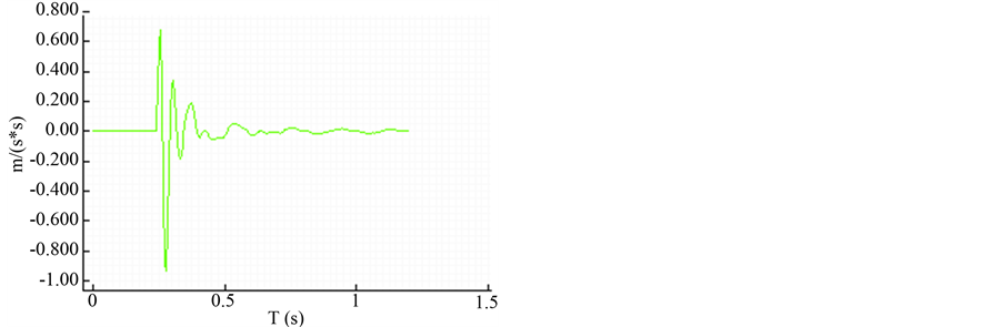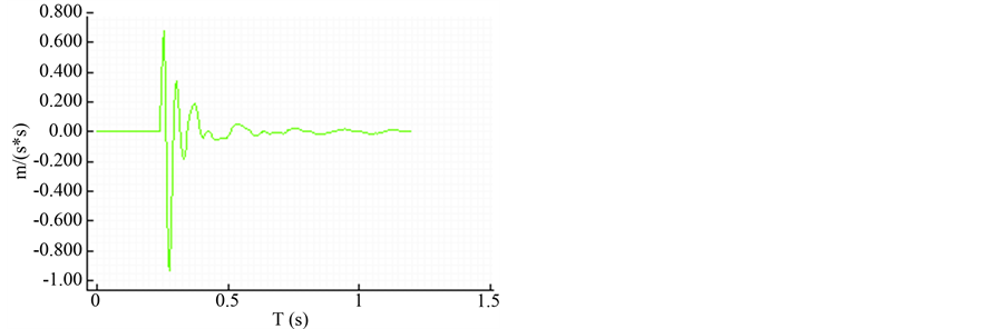 When energy level is 6000 kN∙m, acceleration change curves with time at typical rammer point are as shown in Figures 2-5. Acceleration curve form has the similar form as the exploding vibration. The acting time of Verti- cal vibration is at 0.349 - 2.096 Sec, and that of horizontal vibration is 0.204 - 1.02 Sec. Generally the Vertical vibration acting time is longer than the horizontal vibration time in the same measuring point. Vibration acting time depends on the distance between rammer point and measuring point, soil properties. When the distance between rammer point and measuring point is constant, the vibration acting time along the vertical distributing point is nearer. The Vertical average vibration acting time increases obviously with distance increasing, and the horizontal average vibration time does hardly change.