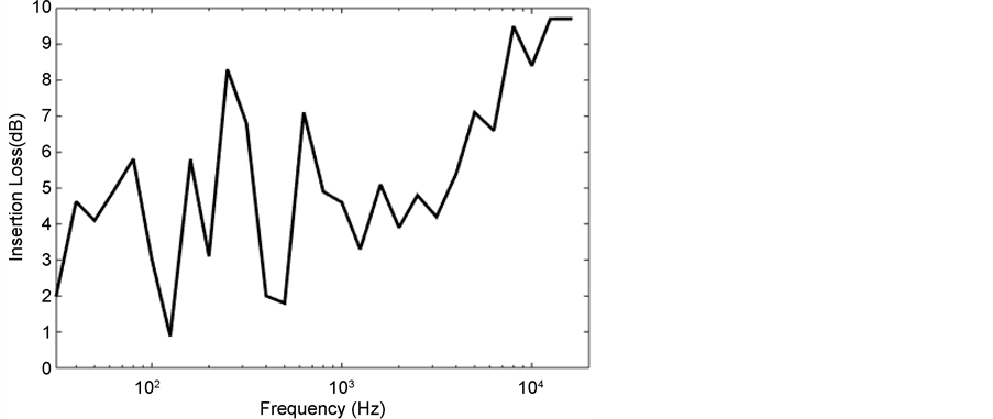 felt throughout the 1/3 octave frequency band. Insertion loss of felt material is between 1 dB and 10 dB as shown in Figure 10. Better insertion loss is obtained at higher frequencies.