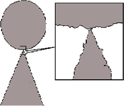 The fact that matter consists of ONDS corresponds to the existence of a stable hierarchy of structures of matter: molecules, atoms, nuclei, nucleons, etc. Moreover, the hierarchy of forces is built in accordance with the hierarchy of matter. The greater the external forces, the deeper along the hierarchy is the restructuring of the system. When external forces are much less than internal forces, the role of body structure in interactions can be neglected. Then the motion of the body is described by the Newton equation and is determined by the symmetries of space. But here in some cases, for example, with bifurcation, such a simplification is impossible [14]. The essence of the bifurcation is that at special points in the phase space, a change in the topology of the system occurs, and symmetry breaking is observed. To solve bifurcation problems, the concept of probability is used. However, if we take into account the condition of infinite divisibility of matter, then we can see an analytical way to solve it. It relies on the fact that when taking into account the infinite divisibility of matter, the bifurcation point has a structure. That is, the description of the system at the micro level removes the feature of the macro-description of the body dynamics at the bifurcation point! In micro-variable, the bifurcation point becomes a certain region of space. Indeed, consider a disk on the top of an isosceles triangle (see Figure 1). If we consider that the disk and the triangle have a structure, then the task of describing the dynamics of the disk is reduced to solving the equations of motion of the microparticles of the disk and the triangle. Thus, taking into account the structure of matter leads to the possibility of a deterministic description of the processes of evolution at singularities points of the macro-description.