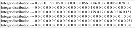 The training samples in this simulation experiment are 13,423 mathematical expressions from mathematical textbooks of elementary school. The testing samples are 2100 web pages from the Internet. Each web page is taken as a sample. According to the construction rule of HMM model described above, the new model parameters can be obtained as . Part of the observation probability distribution matrix after training is shown in Figure 5.