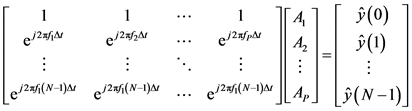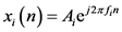represent the amplitude, frequency and phase of i-th complex sinusoid, respectively.