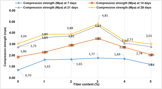 Figure 5. Compressive strength of bricks stabilized with 3% of cement and reinforced with various proportions of N-PALF.