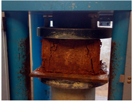 Figure 9 shows the failure mode of the bricks under compression. It can be seen that there was a brittle failure for the unreinforced brick (Figure 9(a)) while with the reinforced one (Figure 9(b)), it appears that there was shearing and a crack was formed. For the reinforced one, the fibres made the bricks to become more ductile, flexible and elastic making the bricks to resist brittle failure. As seen from Figure 9(b) the base of the brick widened under compression. This was due to the fact that, under compression the fibres held together the soil particles against brittle failure and they enabled the brick with stand cracking. The cracks appeared because the fibres reached failure point letting the soil matrix to foil.