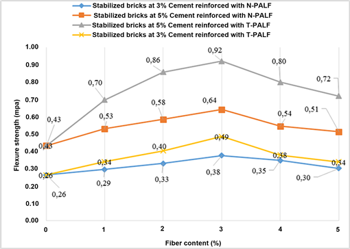 Table 5. Percentage increase in flexural strength (3 N-PALF means: bricks stabilized with 3% cement and reinforced with N-PALF).