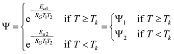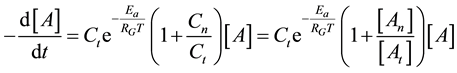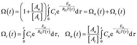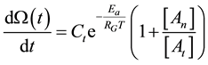 is the concentration of the living cells in t-time. The χ reaction rate could be given by the Arrhenius Equation (1), so