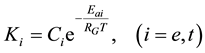 When the chemical or structural properties change, the value of Ec changes, too. Due to the linearity of the Arrhenius plot and its reverse time dimension of χ, we introduce its reciprocal value as time constant [83] as