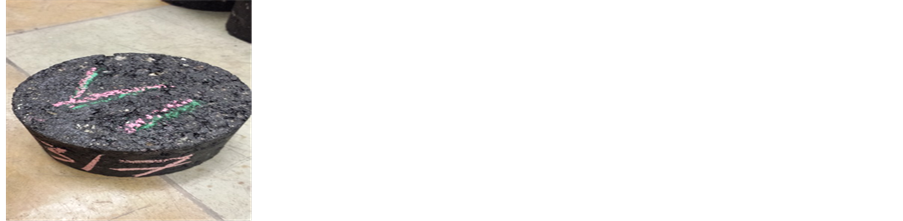 Indirect Tensile Test was conducted to determine the maximum load the asphalt mix sample can withstand and also evaluate if the aggregates and bitumen was bind strongly together by observing the cracked sample. Samples that bind well with the aggregate will not have aggregates surface shown in the crack and also high tensile strength. These samples will be tested 2 ways, first in moisture conditioned to 60˚C for 1 day and second, conditioned to 25˚C for around 30 minutes purpose is to compare how the moisture affects the tensile strength performance for the sample. To calculate for the indirect tensile test, the formula below can be applied and will be referred to as Equation (3) [5] .
