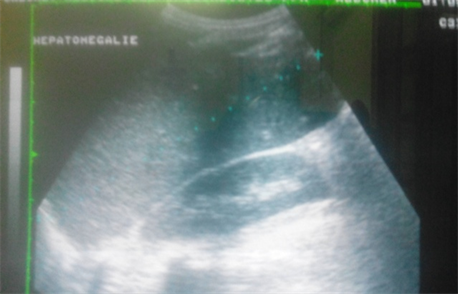 Figure 1. Ultrasound showing Hepatomegaly in our HCV+ patient.