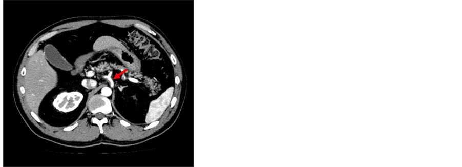 Before 2000, there were only five reports in the literature of celiac artery aneurysm due to spontaneous dissection [1] -[5] , but to date there have been less than 30 reported cases [6] - [12] . In this report, we describe two surgical cases of celiac artery aneurysm due to chronic and asymptomatic spontaneous dissection without atherosclerotic change or medial degeneration.