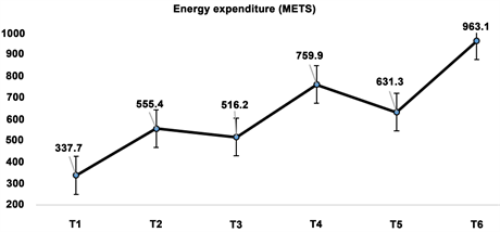 Figure 3. Evolutive profile of energy expenditure related to physical activity over time (T in weeks).