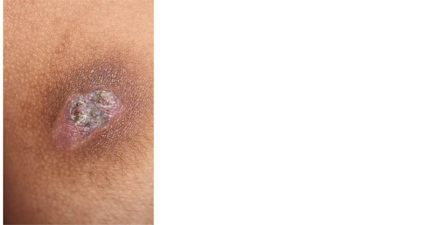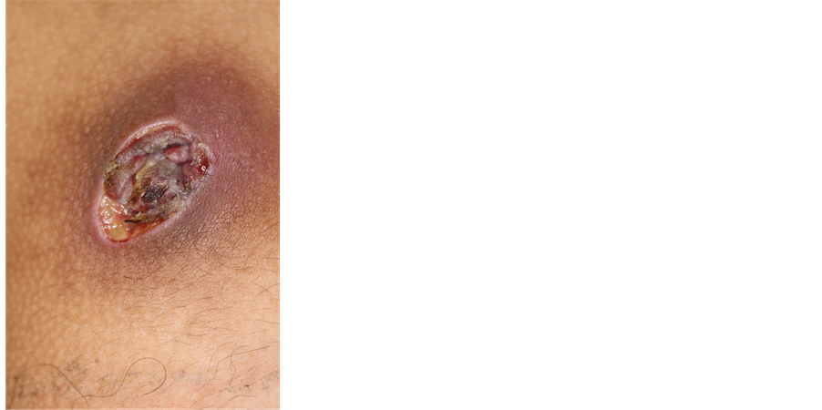 Figure 1. Nodule measuring 50 × 30 mm with a 30 × 15 mm ulcerative lesion on the gluteal region.