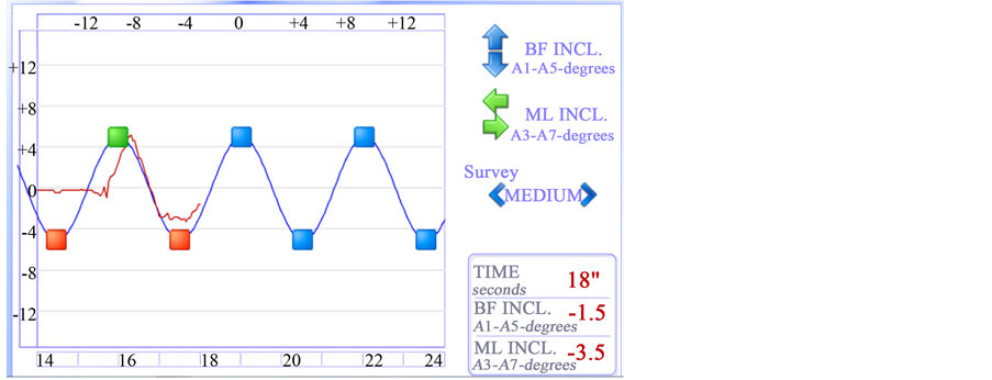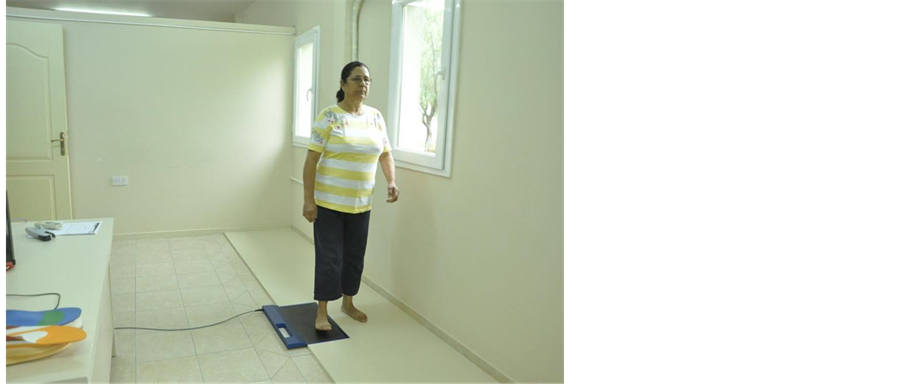 A dynamic balance test was conducted to both groups using a mobile platform (Techno-body, PK 200 WL, Italy). The participants were asked to stand up over the platform in hands-free position and three measurements were taken to acquire an average score (Figure 3 & Figure 4) [17] .