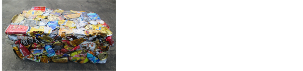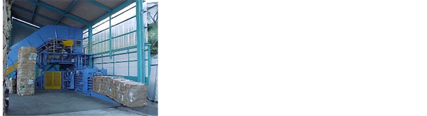 The sorted cans and papers are compressed and baled (as baled materials) by each machine. Regarding the baling for papers, the papers are bailed by the steel wire.