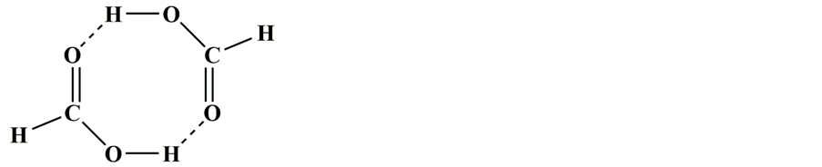 We explain this transition as the competition of attractions between −COOH head parts and n-alkyl tails. The pair of −COOH head parts of two n-alkanoic acids may form a cluster complex like the methanoic acid dimer, Figure 7.