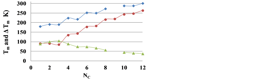 Table 2. The melting temperatures of n-alkanoic acids and triple point temperatures of n-alkanes and their differences for NC from 1 to 12.
