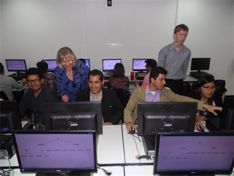 Figure 3. Professional from TRU giving workshop in a computer laboratory at UNW. Simultaneous translation is being done by professional from UNW.
