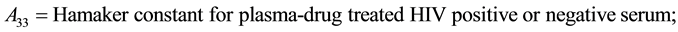 HIV has the effect of reducing the absorbance of the surface of a given blood component. The amount by which the surface of a blood component surface is decreased by HIV will be given by the second term on the right hand side. If HIV fails to reduce the absorbance of a drug film coated blood surface, it means that the HIV has not attached itself to the surface, then