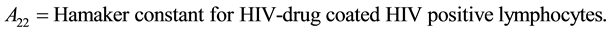 The thermodynamic model used for HIV-blood interactions is based on the concept of Hamaker coefficients as advanced by some authors [13] [16] - [20] . The idea is that there will be mutual attraction between the virus and the lymphocytes if the combined Hamaker coefficient A132, is positive, and repulsion if it is negative.