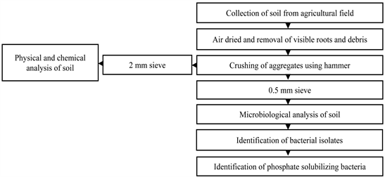 Figure 3. A Flowchart of soil collection and processing for identification of phosphate solubilizing bacteria.