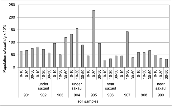 Table 1. Composition of the community of microorganisms in the soil of Aral Sea—profiles 901-905 (samples 1 - 15), population of microorganisms cells/g × 105.