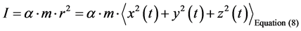 The idea is that we need to calculate the following, i.e. a moment of inertia for a system, and also the frequency. As to Equation (5) according to the following, we can come up with a generic Equation of motion, namely if we do averaging and set out a general time averaging. Fortunately for us the trig identities naturally vanish.