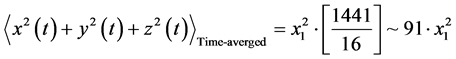 The problem starts immediately, in that the parenthesis of Equation (15) above would have to be a time averaged quantity. i.e. we would be looking at