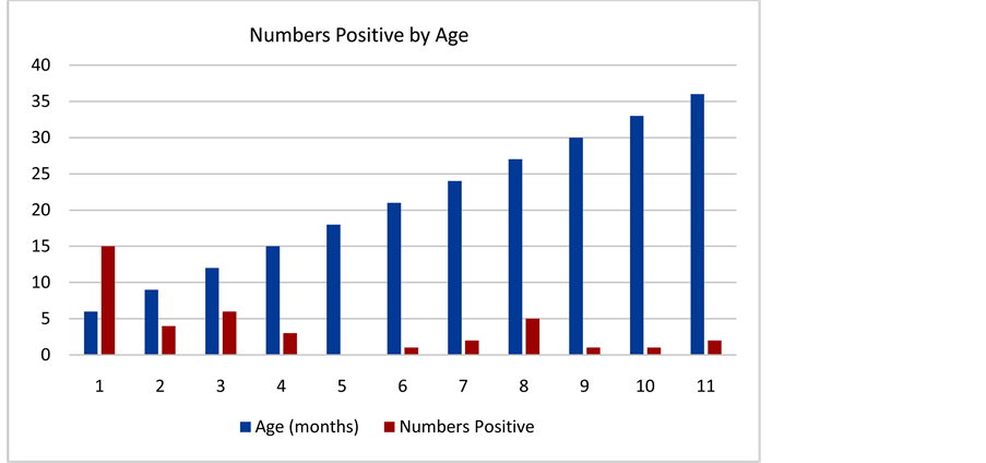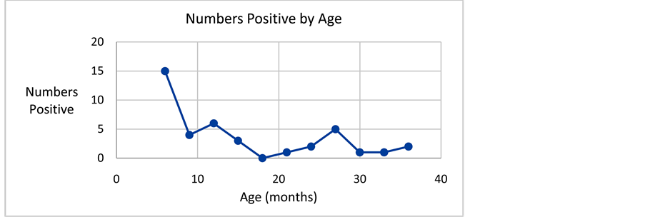 Figure 3. Scatter graph demonstrating Numbers Positive by Age based on ELISA results.