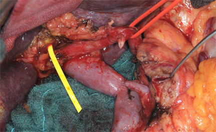 Figure 1. Intraoperative situs after pancreatoduodenectomy with portal vein resection and end-to-end reconstruction.