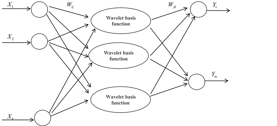 WNN is neural network model composed by wavelet function as its activation function. Structural diagram of three-layer wavelet neural network is shown in Figure 1.