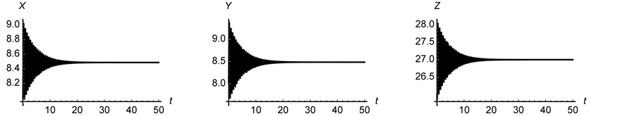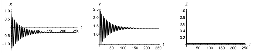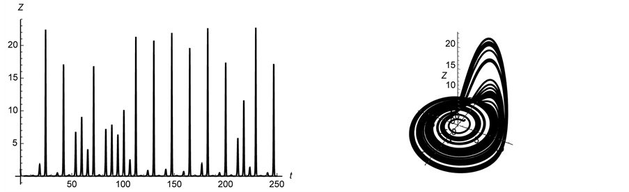 System (4) has been extensively studied and, consequently, its equilibria and the behavior of system (4) are well understood. Figure 5 illustrates chaos in the Rössler attractor using the parameter values