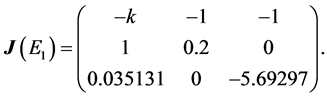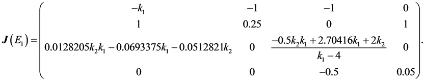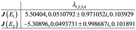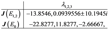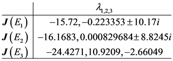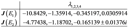 The Jacobian of system (3) evaluated at each equilibrium point has the following eigenvalues