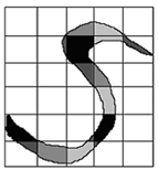 According to FRS theories proposed by the literatures [3] [6] [8] and considering speed influence for image processing, the maximum size of image matrix is chosen as 36,000 × 29,800 by experiments. The ratio of pixels no-colored to pixels colored on the grid the data processed is 7:2. For easy discussion, here we choose a small size with 360 × 300 and use a grid-matrix method by FRS function, as shown in Figure 1(a) and Figure 1(b).