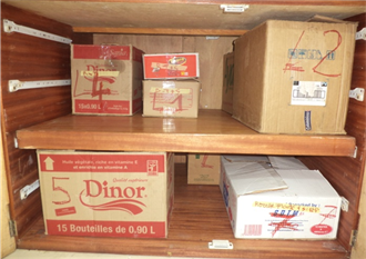 A mass of 120 kg of freshly picked, film-coated cola nuts was used for the study. After dehulling, sorting and washing, 40 kg of dehulled cola nuts (20 kg of red nuts and 20 kg of white nuts) were used for the implementation of 4 post-harvest conservation technologies per typology of cola nuts (8 samples of 5 kg including 4 of white cola nuts and 4 of red cola nuts) (Figures 1-3). Thus, the first sample was treated with “TopBio” (soaking in the solution diluted to 10 mL/L of water per 1 kg of nuts for 30 min). After draining, the nuts removed with the solution were packaged in the trays. With the second “PATISFRANCE” technology, the nuts were packaged directly into the trays containing diluted glucose syrup at 63%. For the third technology “TopBio + PATISFRANCE” the nuts were first treated with biopesticide and packaged in trays containing diluted glucose syrup. The latest technology “control” consists of nuts coordinated only in trays. The processed cola nuts were put in the polystyrene trays packaged in cartons and kept for 6 weeks (Figures 3-5).