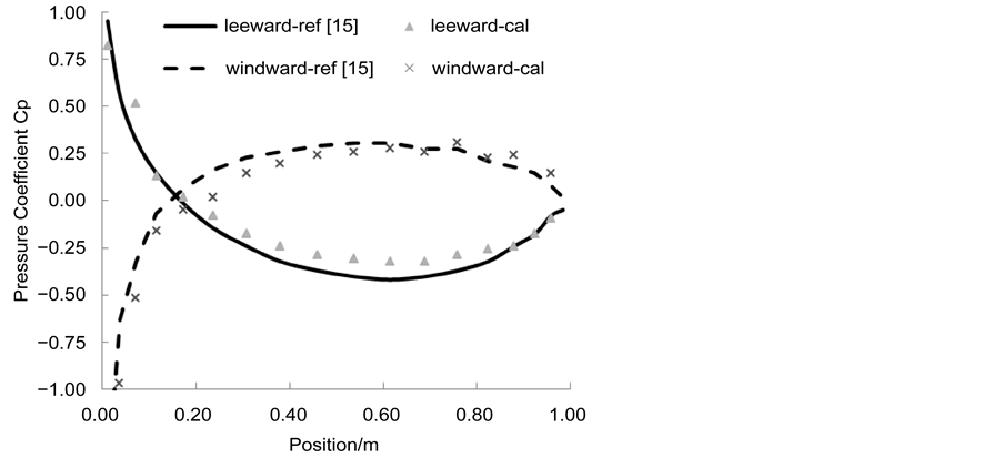 An arc wind sail is simulated firstly to verify the accuracy of numerical model. The diagram of the sail is shown in Figure 3. Computed pressures were compared with the reference data [13] which turned out to be good agreements.