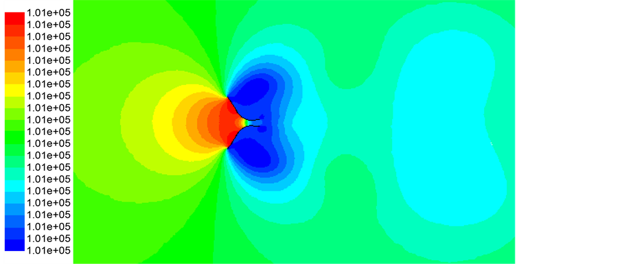 Figure 5. Contour of pressure (Pascal).