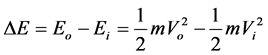 From the theorem of kinetic energy, the change of the kinetic energy from input to output will be written as follows: