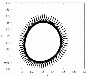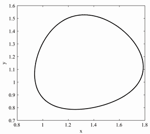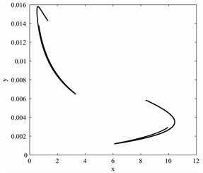 According to J, one can obtain two eigenvalues with given . From which, one can easily check that is a stable node . Two eigenvalues at the equilibrium are , then one can get that is also a stable node (see [14] ). Next, we only need to consider the stability of the equilibrium .