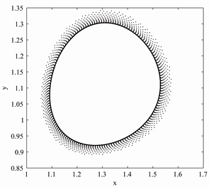 Figure 4. Phase portraits of Figure 3(a) for various values of r, (a) r = 2.541; (b) r = 2.55; (c) r = 2.546; (d) r = 2.577.