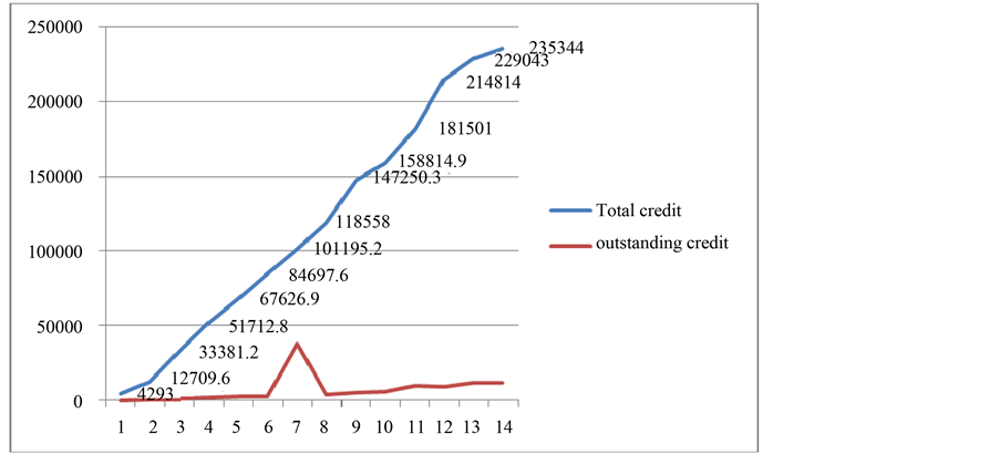 Figure 1. Part credit outstanding DFS of 2000 to 2013 in thousands. Sources: calculations from BCEAO data FMCS, UM-CSAP and UM-PMSCS.