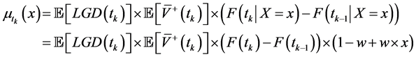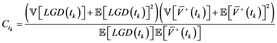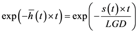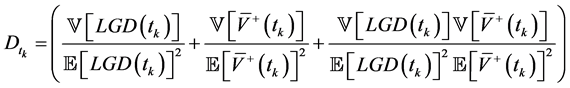 ・ The first approach is based on the building of a relation between the LGD and the exposure, and also, the definition of the relation between the exposure and the default. We use the same notation in the last section and we link the LGD with the exposure through the below function: