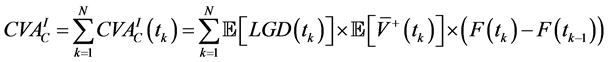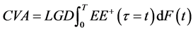 The Credit Value Adjustment (CVA) is defined by the difference between the portfolio value without the counterparty default and with this component. The CVA could be written as: