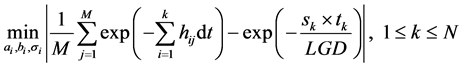 Finally, when the parameters are computed, then the hazard rates are built sequentially at each time step. The next step allows to define the relation between the exposure and the probability of default distribution. Therefore, we use the copulas to get this relation, and we take the following definitions: