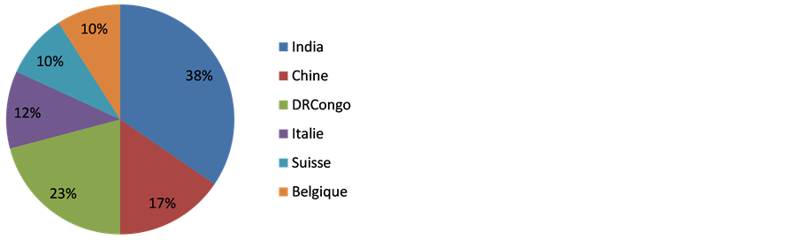 Figure 4. Distribution of samples illegally marketed in the DRC according to origin country.